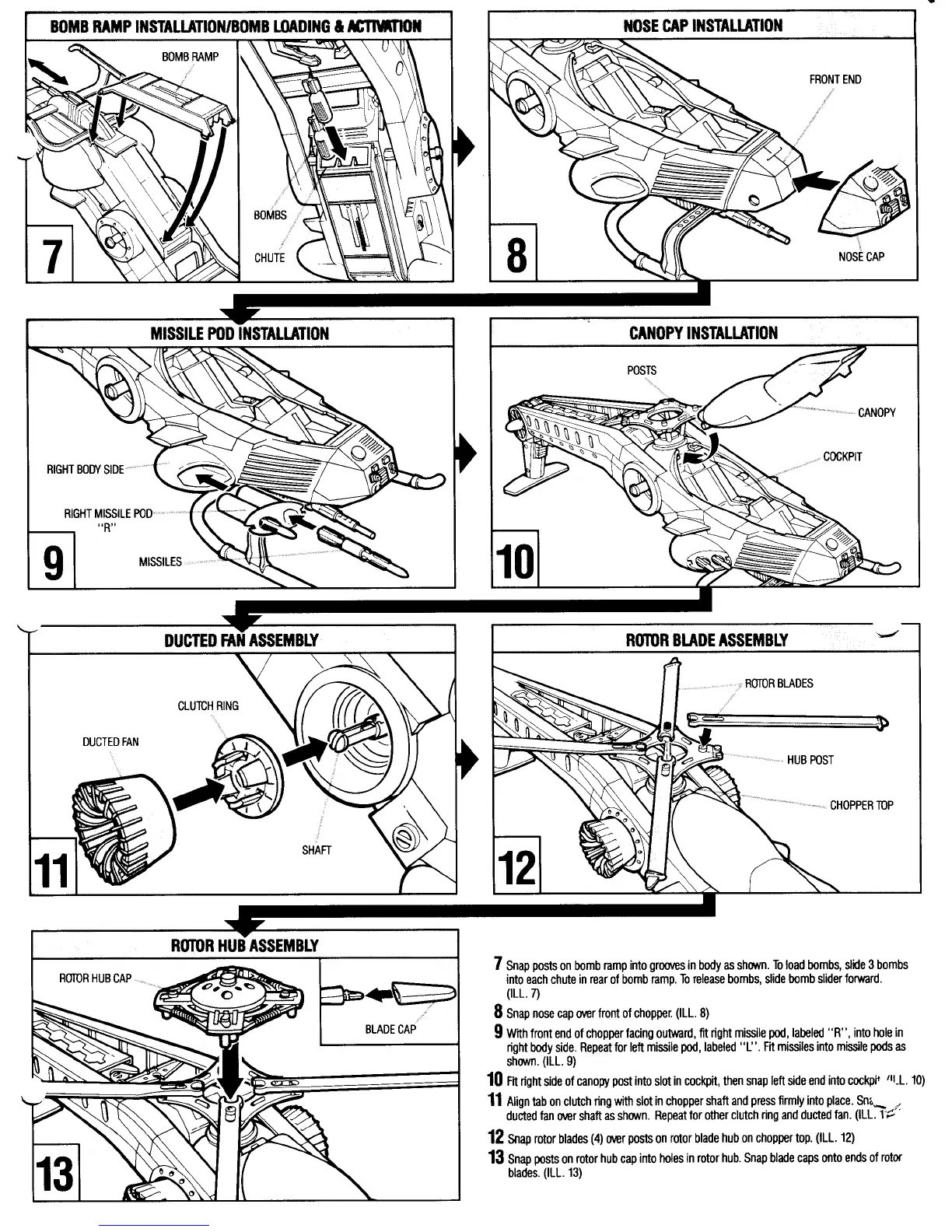 Hasbro Retaliator - Bomb Ramp Installation and Loading; Nose Cap Installation; Missile Pod Installation; Canopy Installation