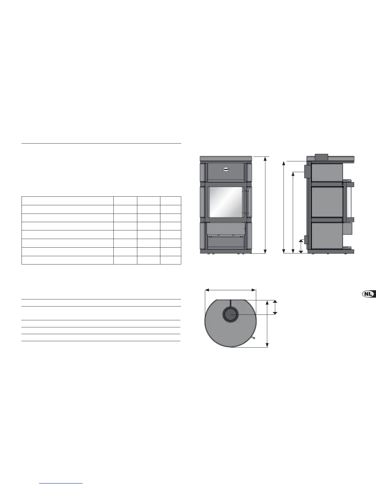 Voor de afmetingen van de schoorsteen volgens EN 13384-1 / 2 gelden de volgende