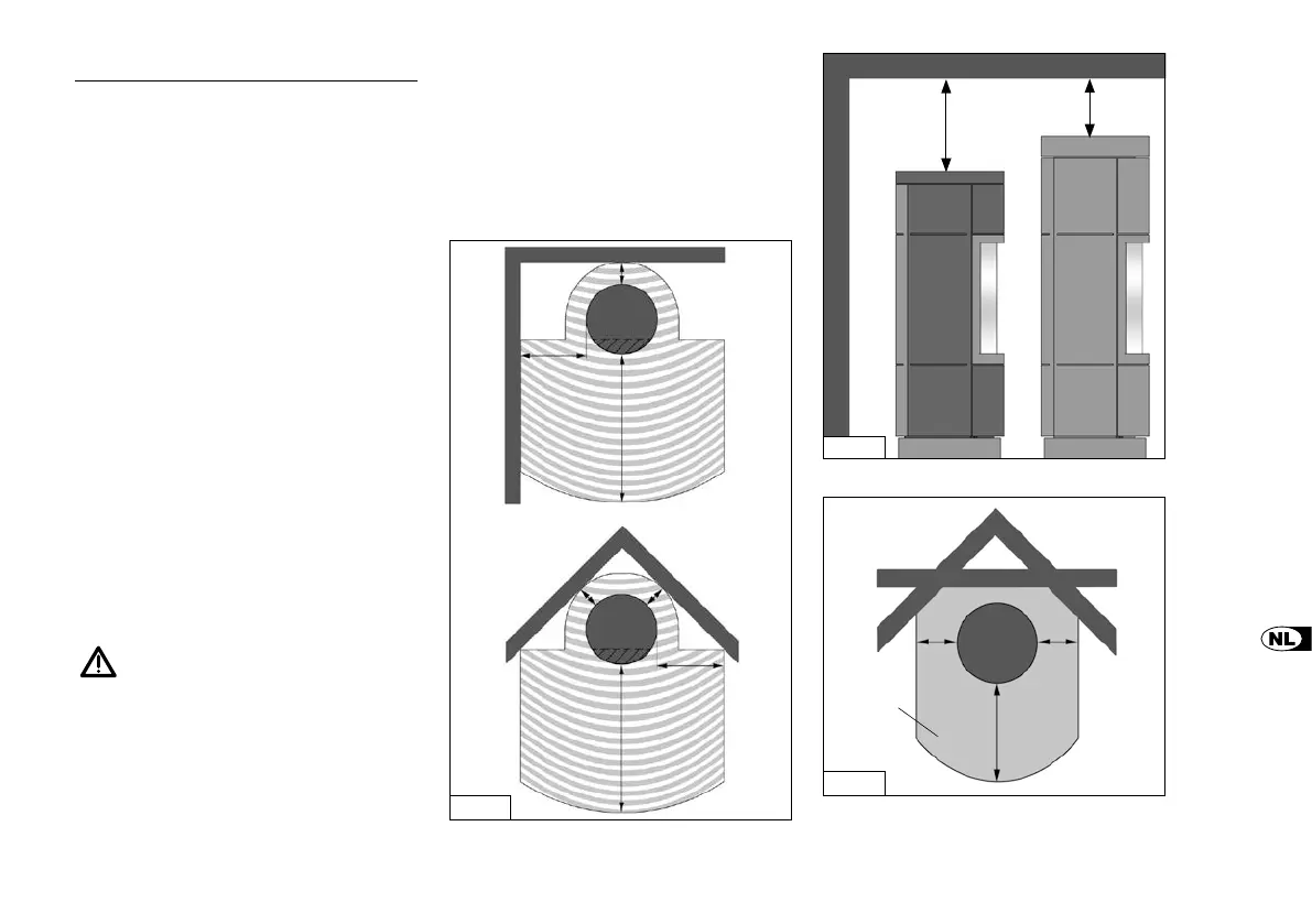 100 cm voor en 45 cm naast de kachel mogen