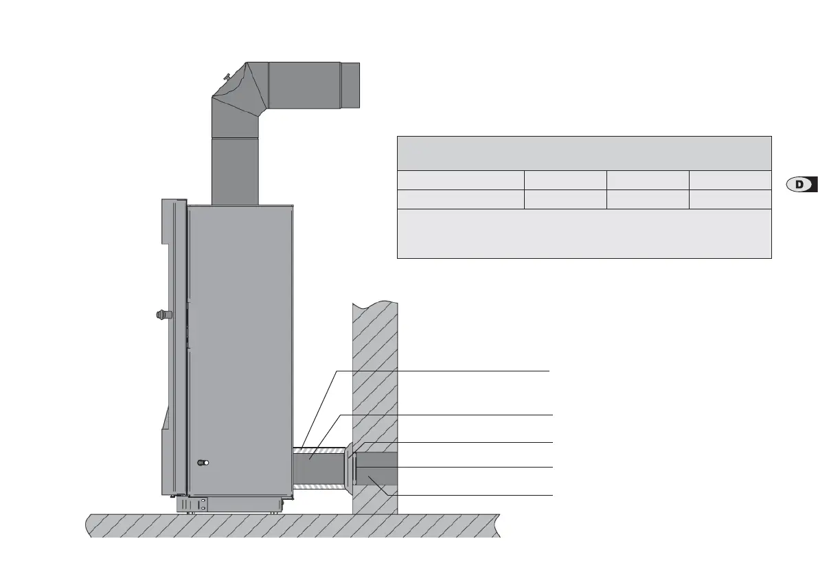 Dämmstoffdicke der Verbrennungsluftleitung bei einer Raumtemperatur von