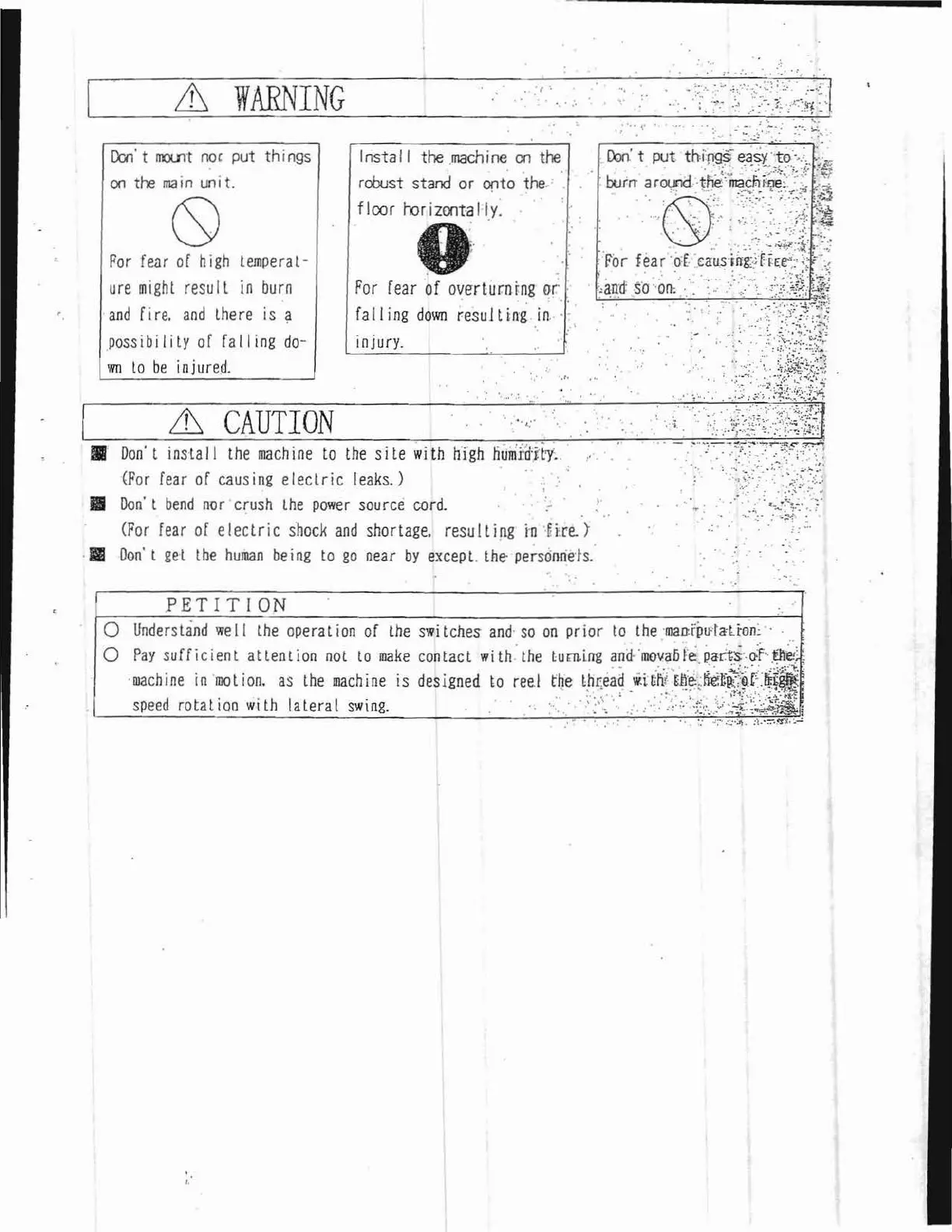 HASHIMA HW-40C - Warning