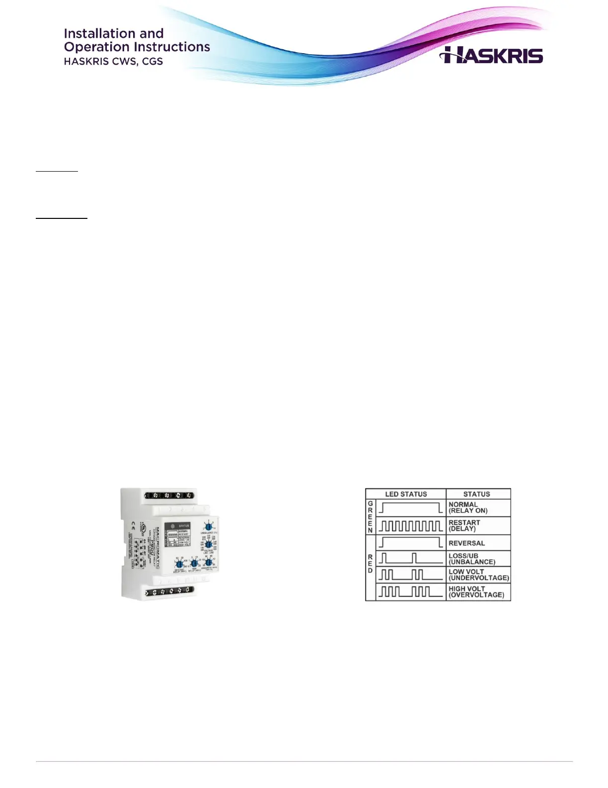 Operation: The phase monitor is factory adjusted by Haskris according to the proper electrical