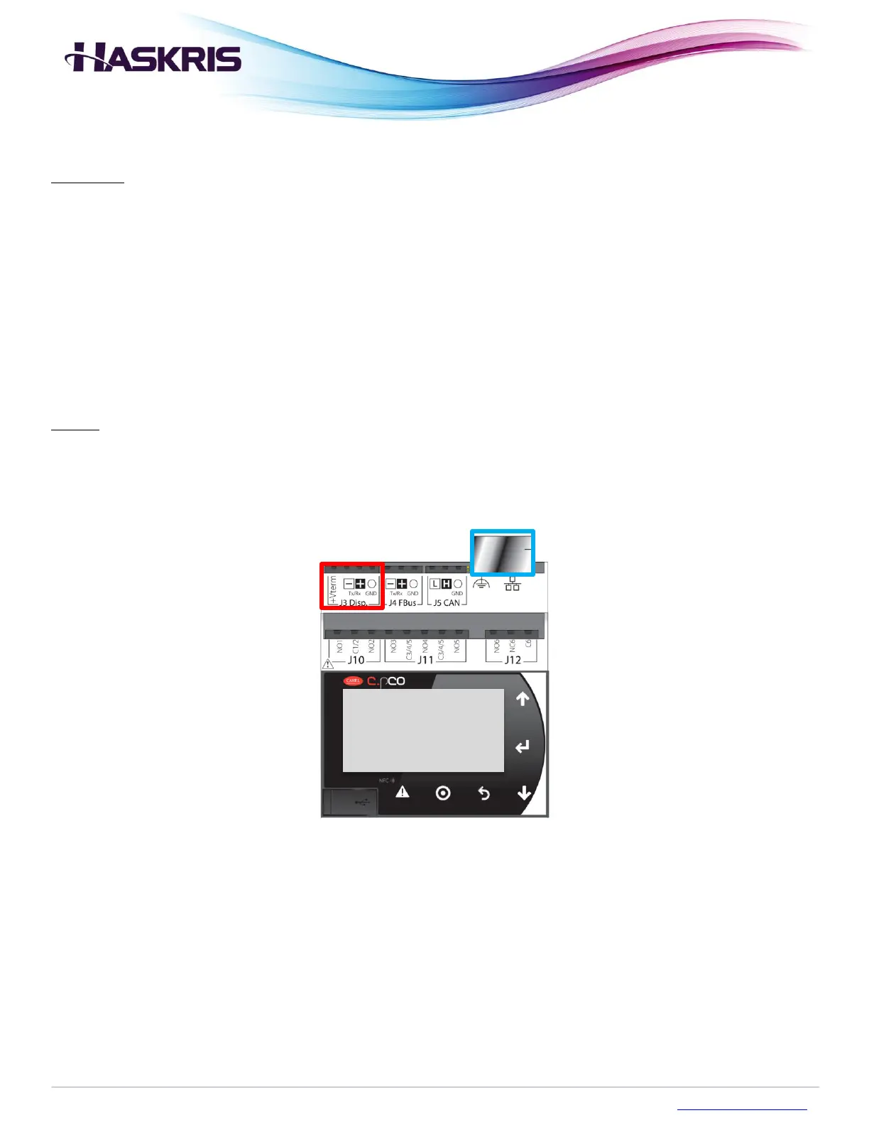 connect wires to TX-, RX+, and GND terminals on the J3 Disp. port (red below). If ethernet TCP/IP is