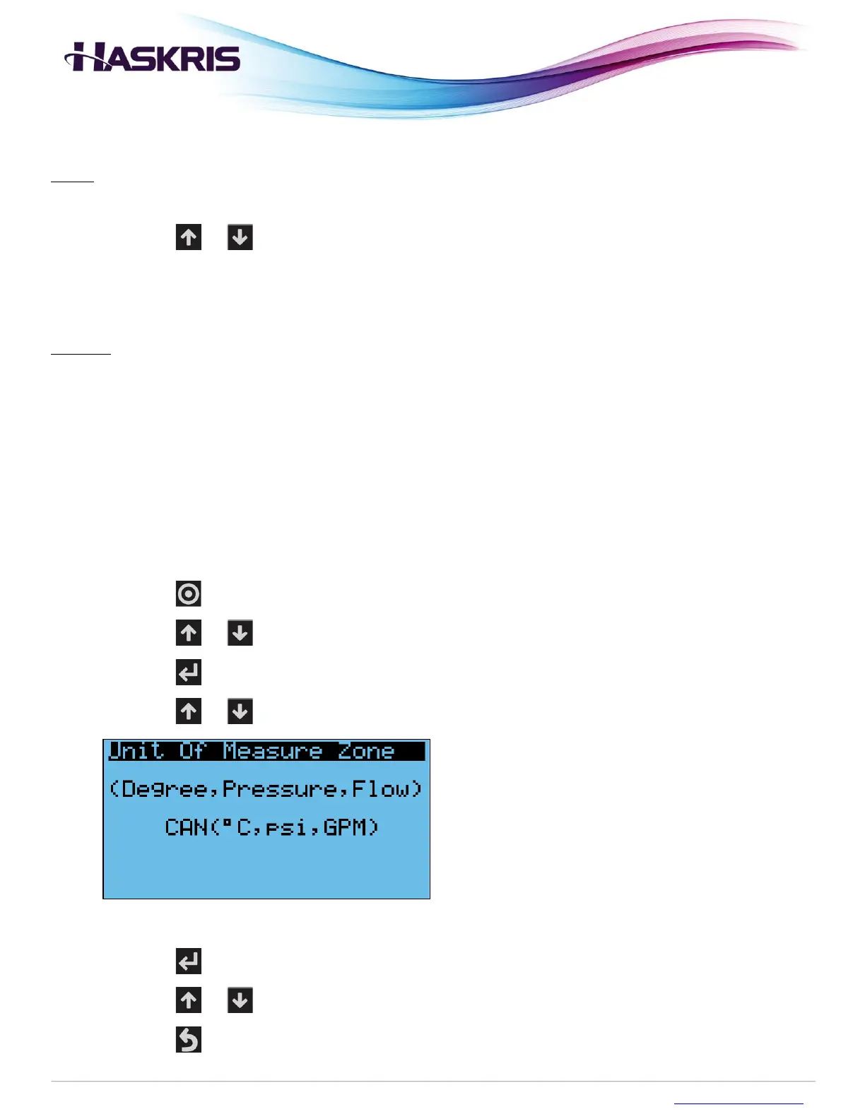 5. Press the or buttons until you see Unit of Measure Zone