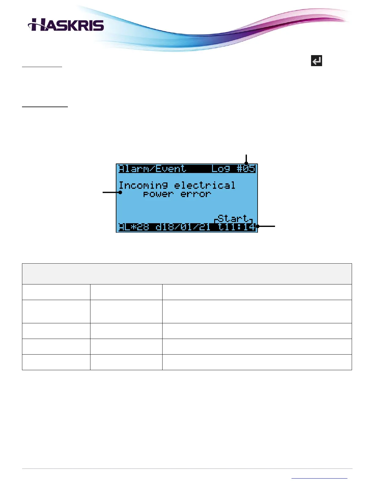 indicates when the fault occurred. Stop indicates when the fault was cleared.