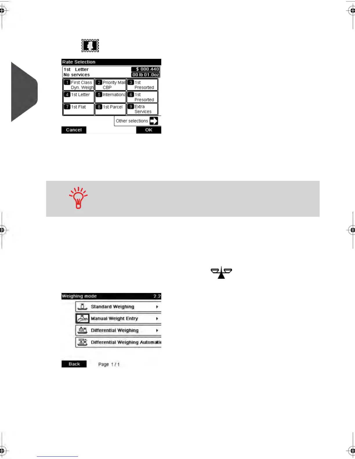 efficient weighing method that uses the weighing platform to save time: see Choosing