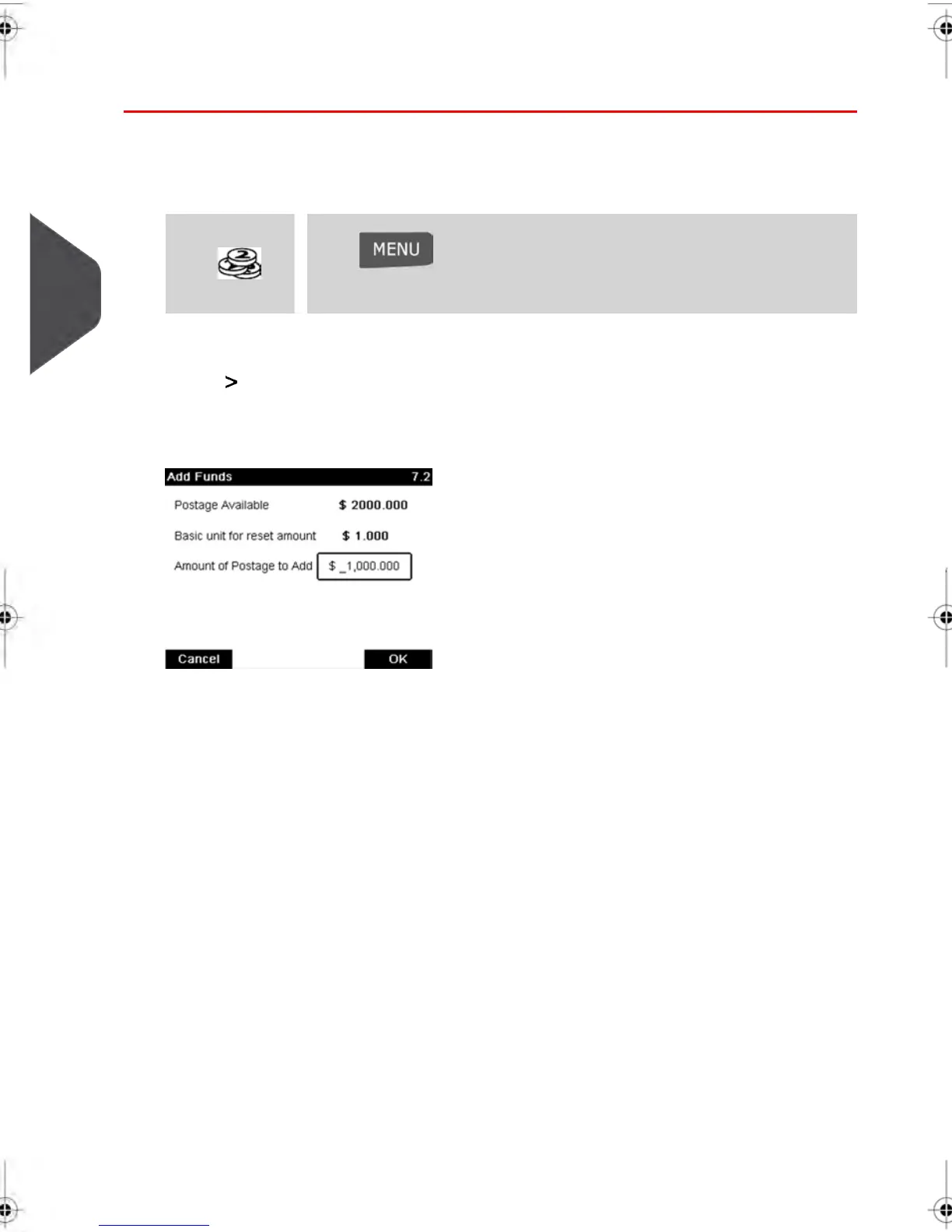 4. Enter the amount of postage to add using the keypad (use C to clear a digit, press C
