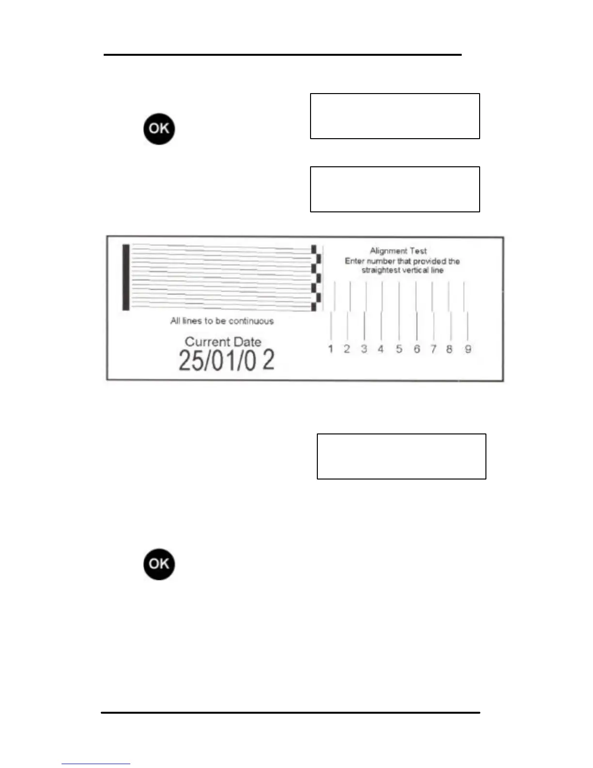 Note: All horizontal lines in the test print must be clear and