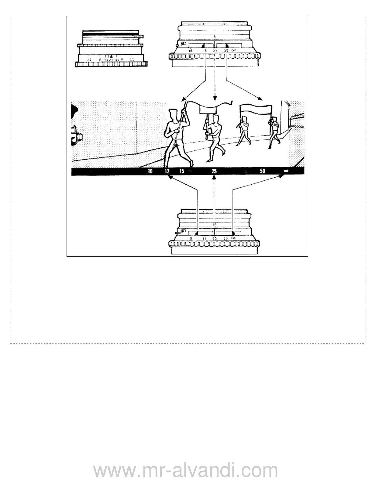 distance scale. These markers indicate the extent of the depth of field available as shown on the distance scale. The field