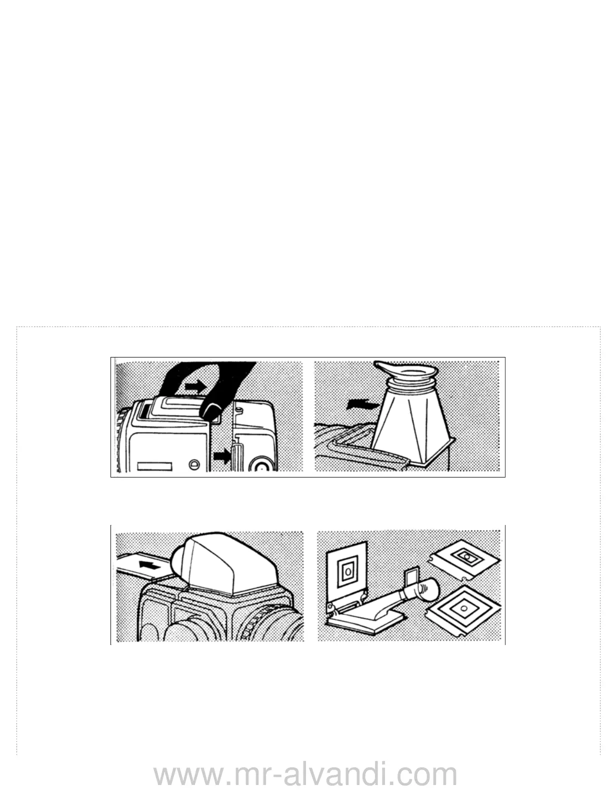 The ground glass adapter can be combined with the magnifying hood or the standard reflex hood of any of the other Hasselblad