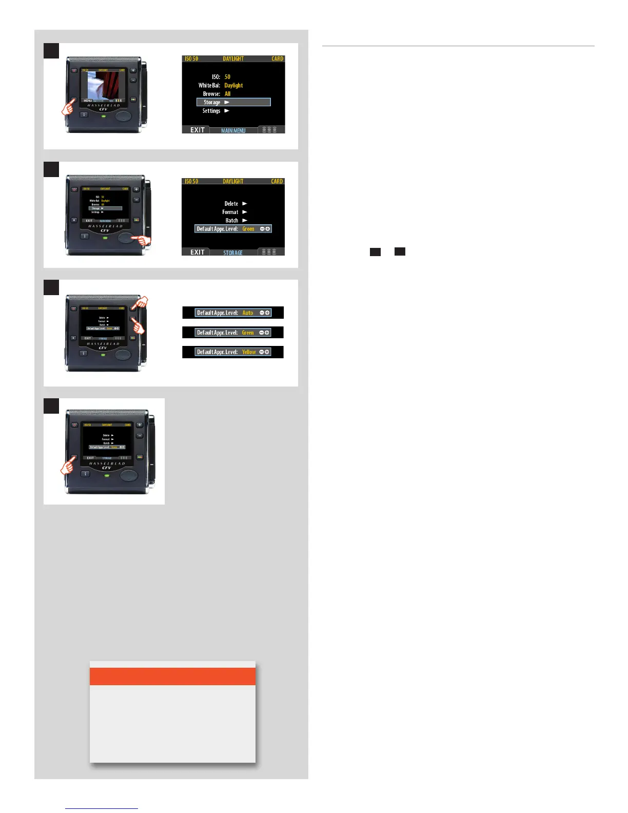 2. Press to navigate down and select the Storagelevel.