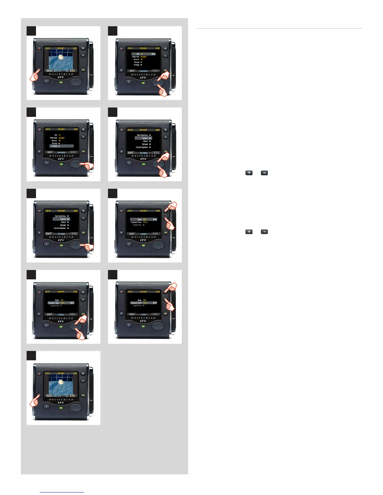 7. Use and to select SHUTTER DELAY or EXPOSURE