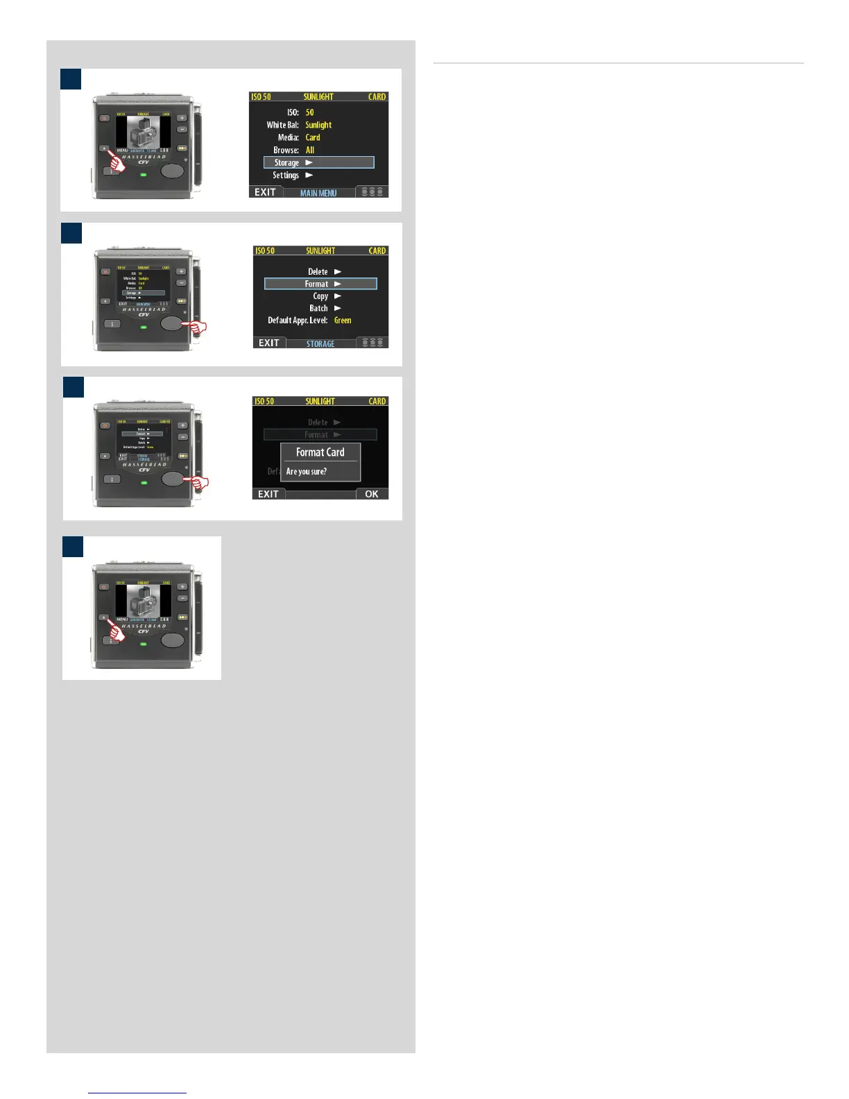 2. Select MAIN MENU > STORAGE > Format. (See also