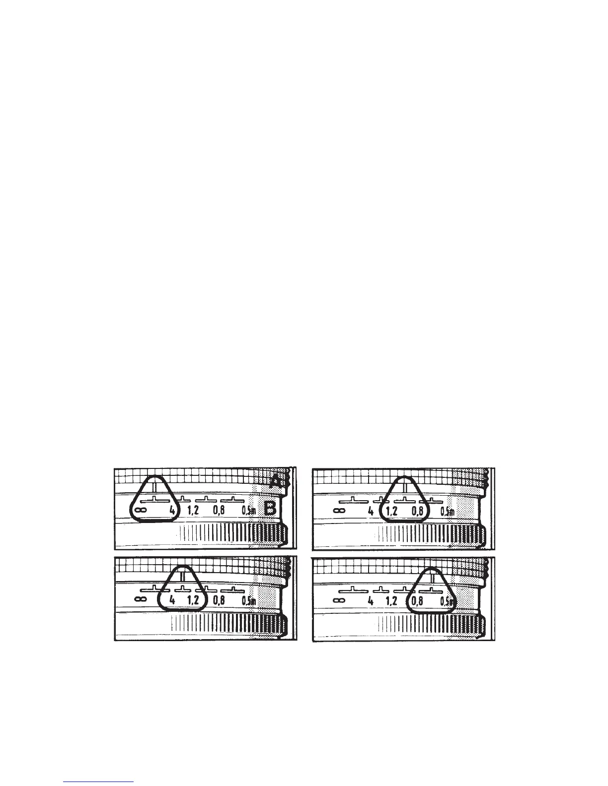 on the 50 mm lens are infi nity to 12 feet (4 m); 12 feet (4 m) to 4 feet (1.2 m); 4 feet (1.2 m) to