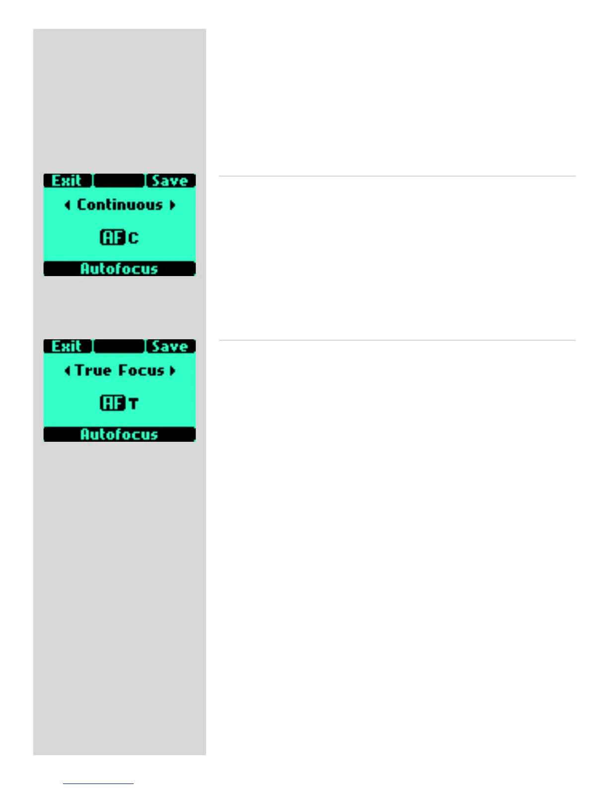 The True Focus setting (AF T) is generally used in specific circumstances to automati-