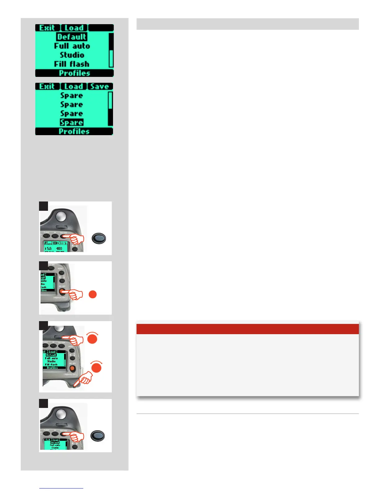 button (ON.OFF button) on the grip and the profile screen will appear.