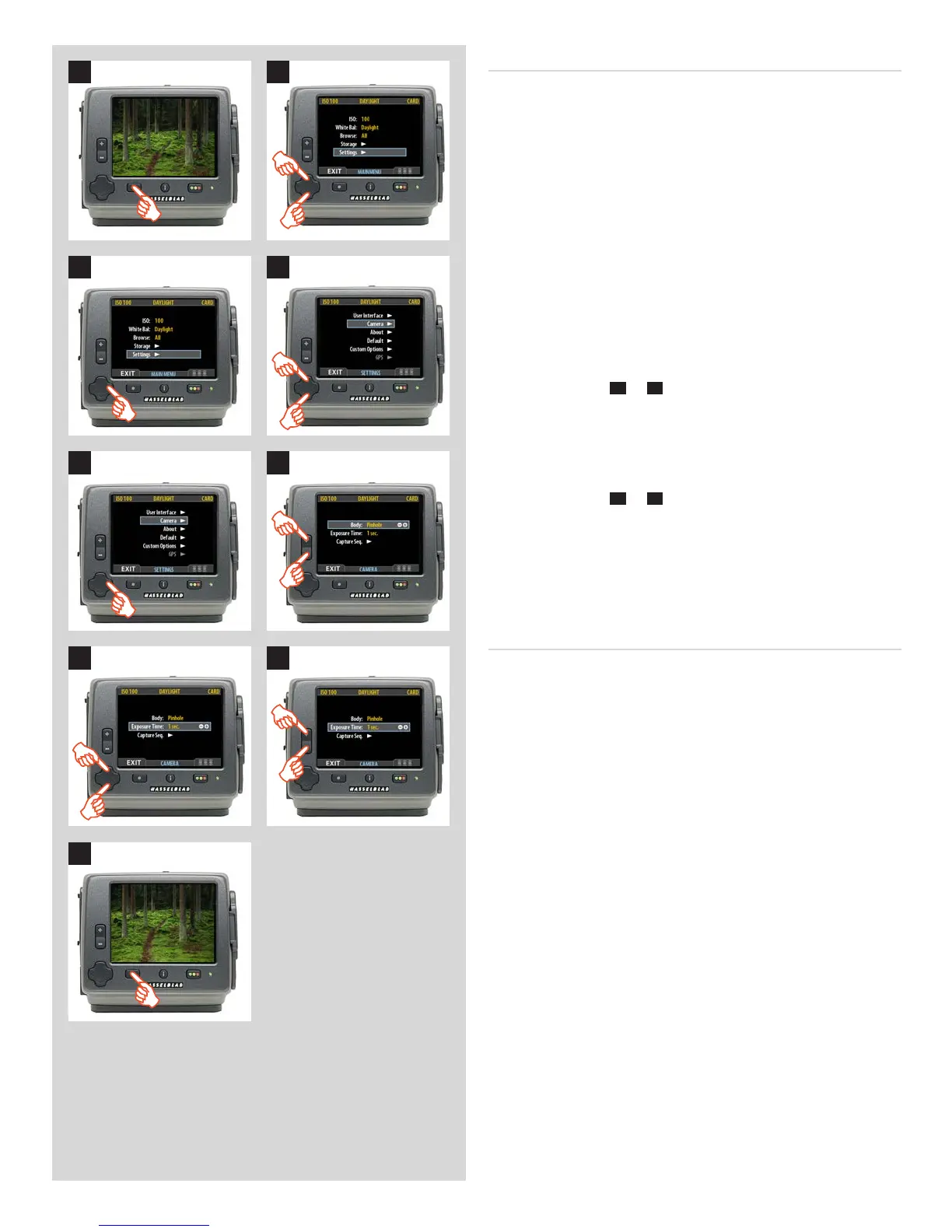 7. Use and to select EXPOSURE TIME or CAPTURE SEQ.