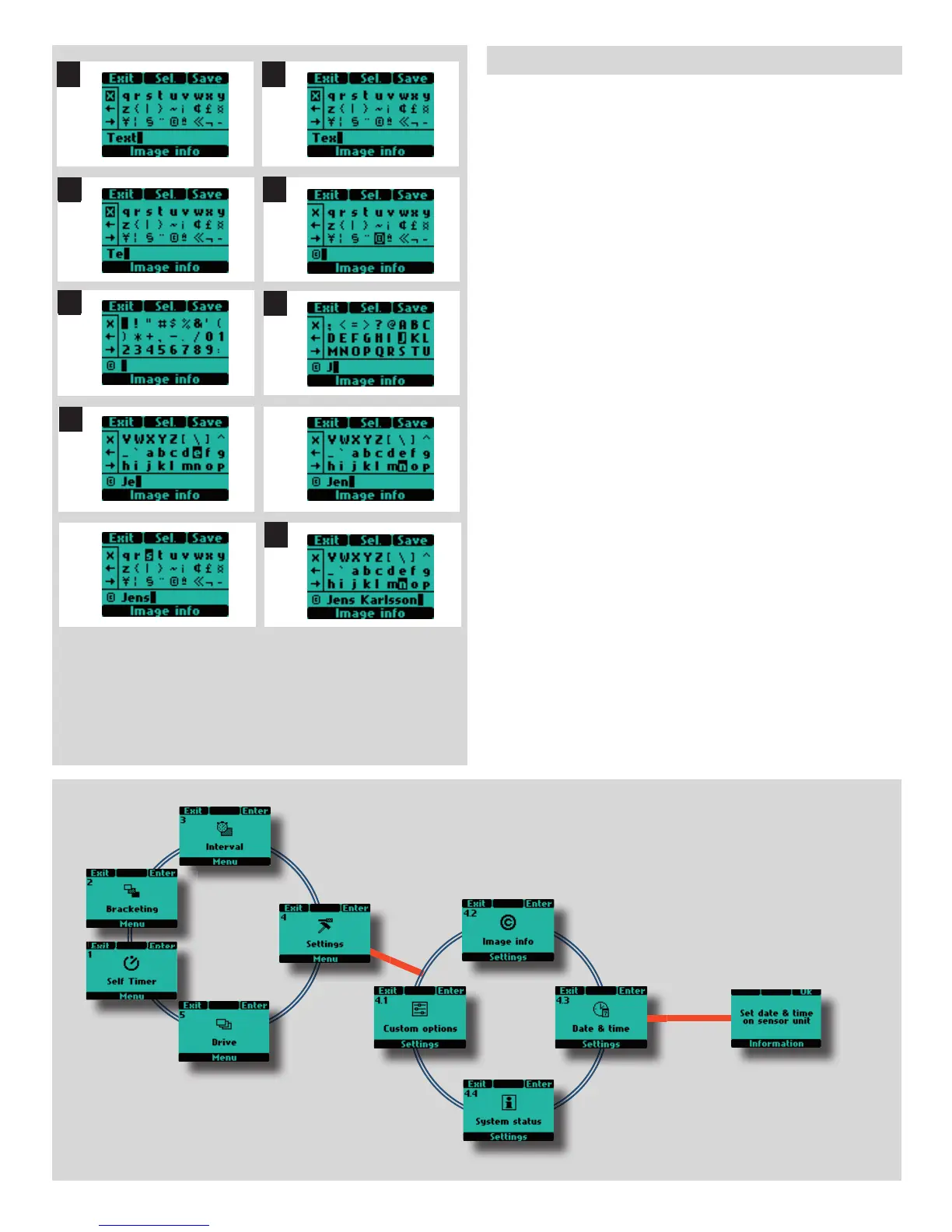 1) Start by accessing the Image info screen. On the text row