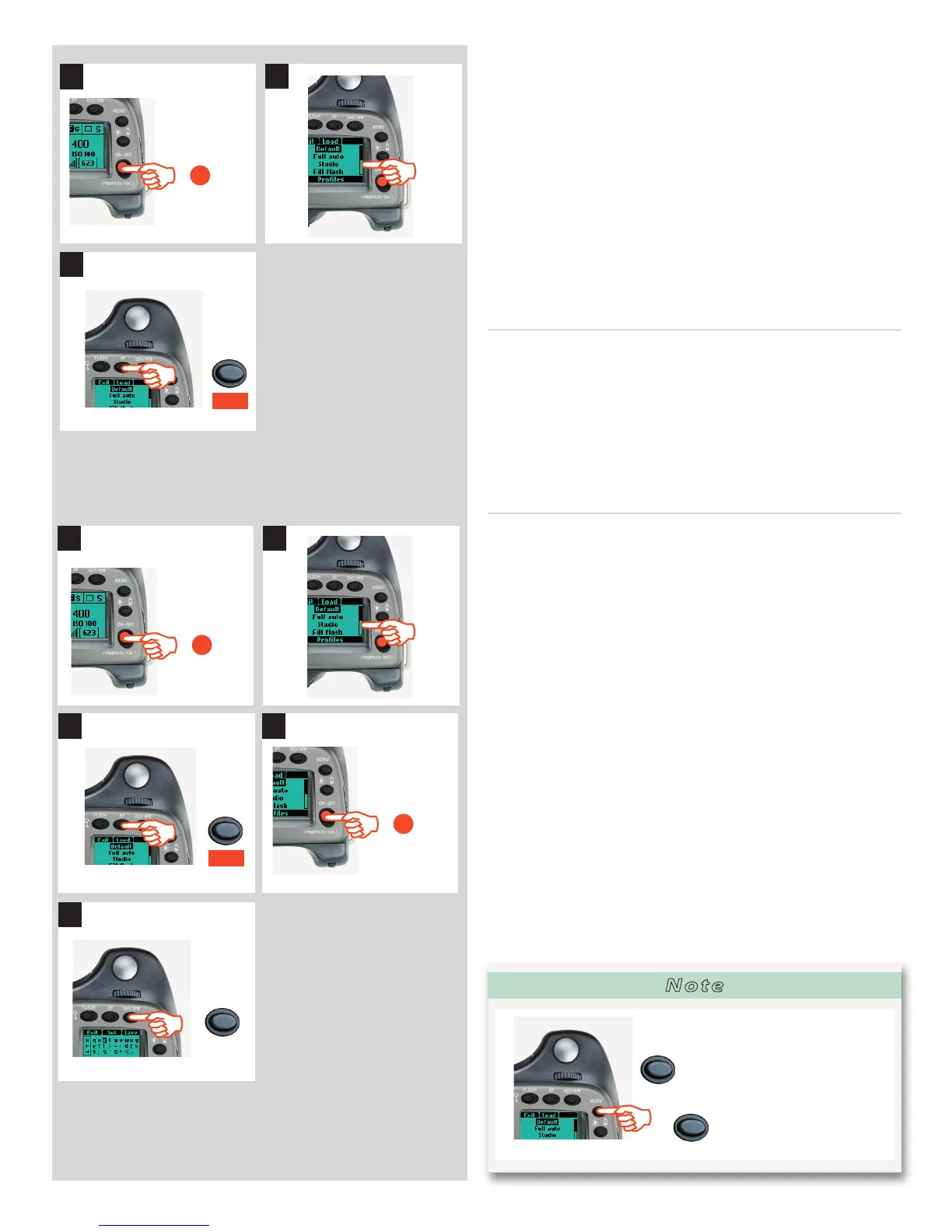 5) Press Save (ISO/WB button) The Pro le name screen is then
