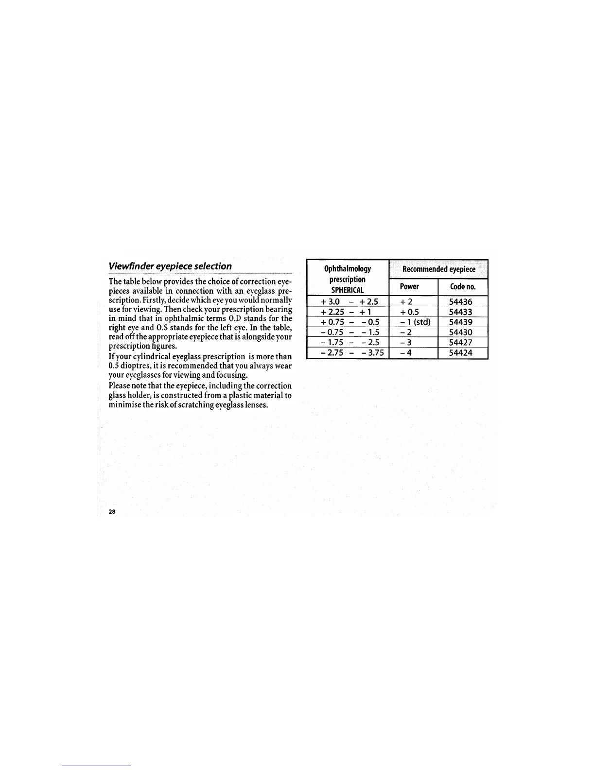 Recommended eyepiece