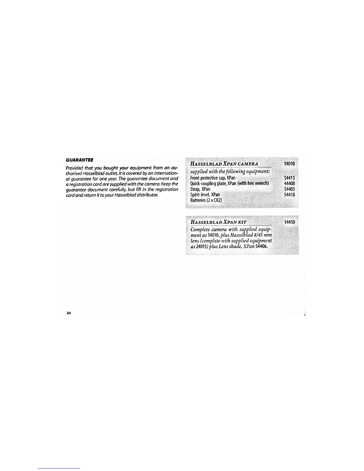 Hasselblad Xpan - Guarantee Information
