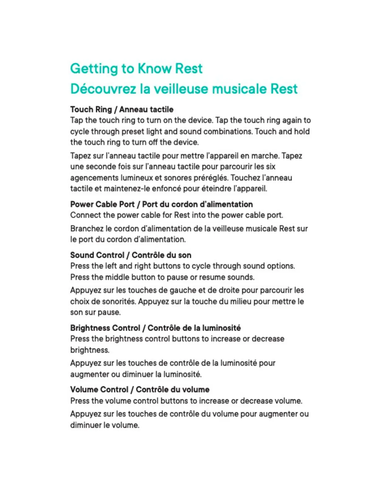 Branchez le cordon d'alimentation de la veilleuse musicale Rest sur