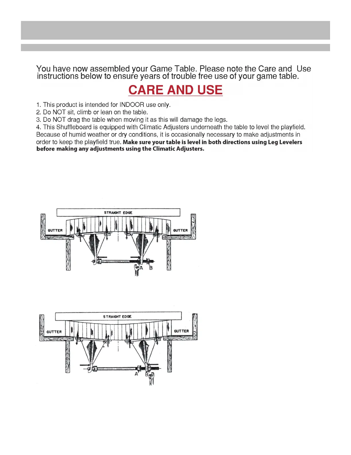 Please note that the shuffleboard will react to the adjustments for several days. Check the playfiled again