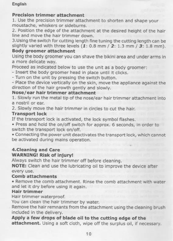 Hatteker RFC-588 - Precision Trimmer Use; Body Groomer Use; Nose;Ear Hair Trimmer Use; Transport Lock Function