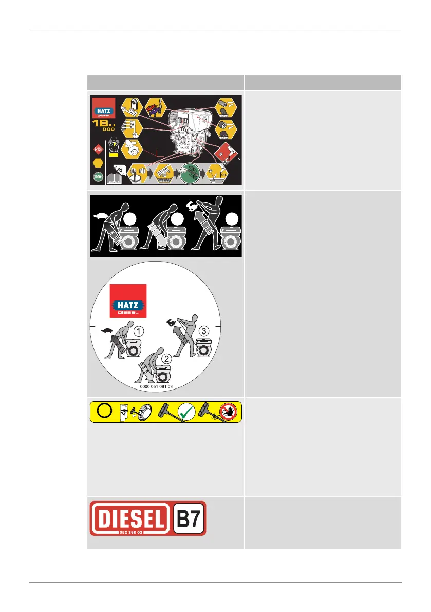 Warning labels and information signs on the engine