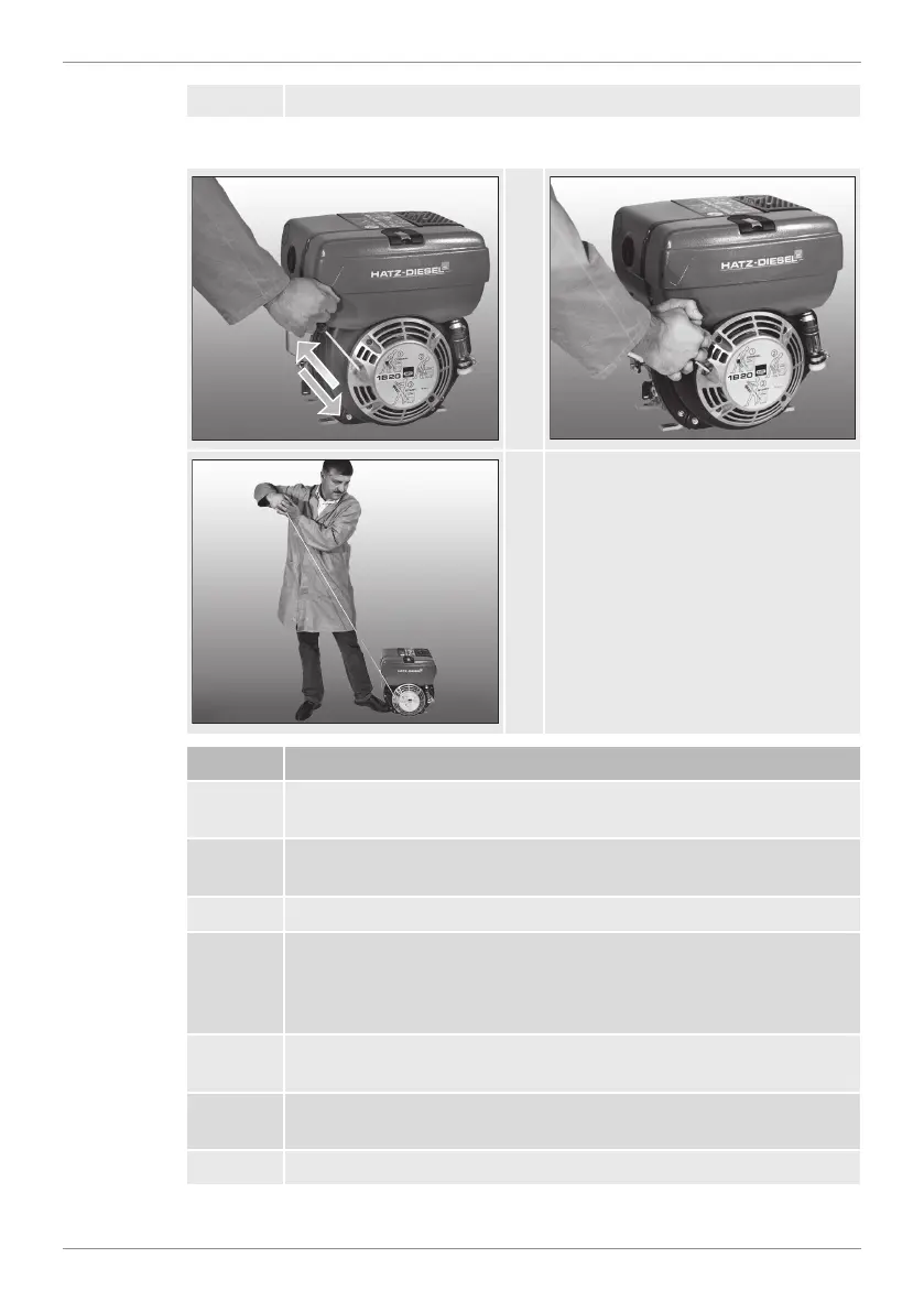 4 Pull the grip(5) with the rope through slowly and let it run back