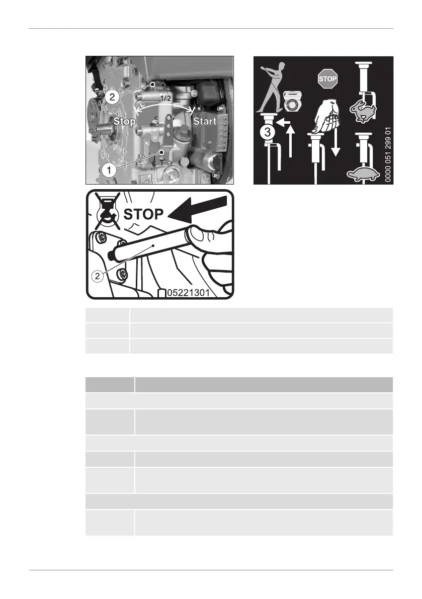 1 Push the speed control lever (1) all the way to the "STOP" po-
