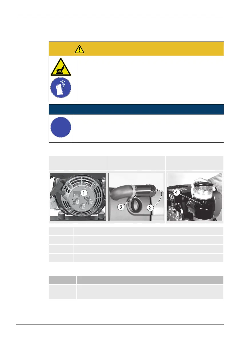 1 Check the air intake opening (1) for coarse contamination such
