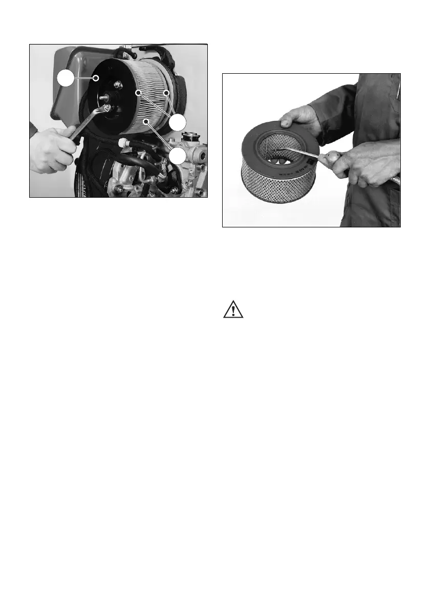 – Tilt the filter element and hold it against the