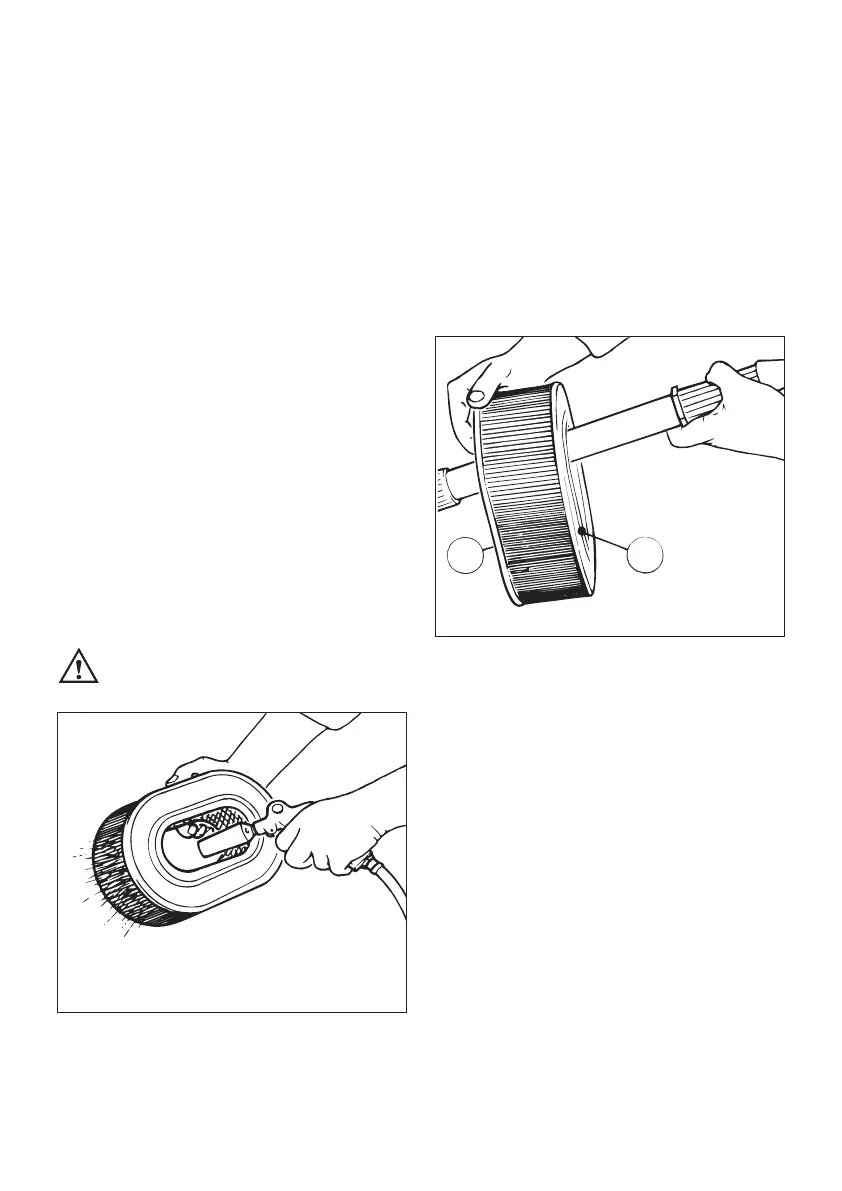 – Hold the air filter cartridge at an angle against