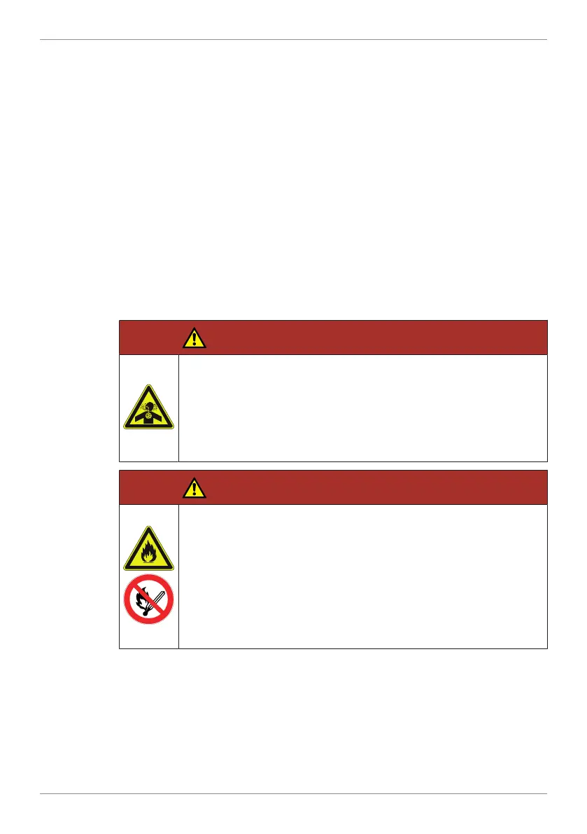 Danger to life from inhaling exhaust gases.