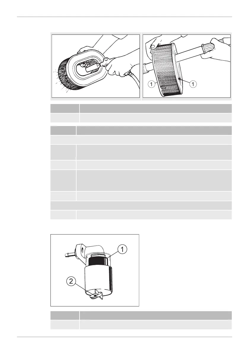 2 Check the sealing surfaces (2) of the filter cartridge for damage.