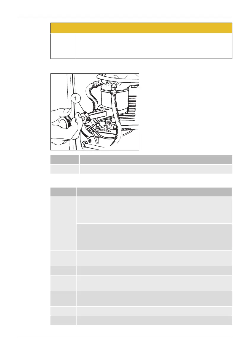 4 Slide on the strap wrench (1) and unscrew the fuel filter counter-