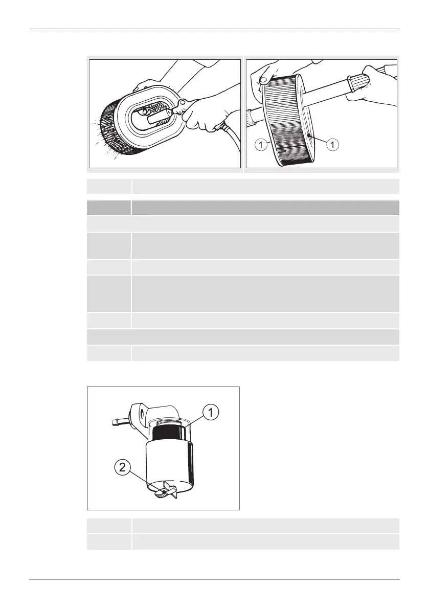 2 Check the sealing surfaces (2) of the filter cartridge for damage.