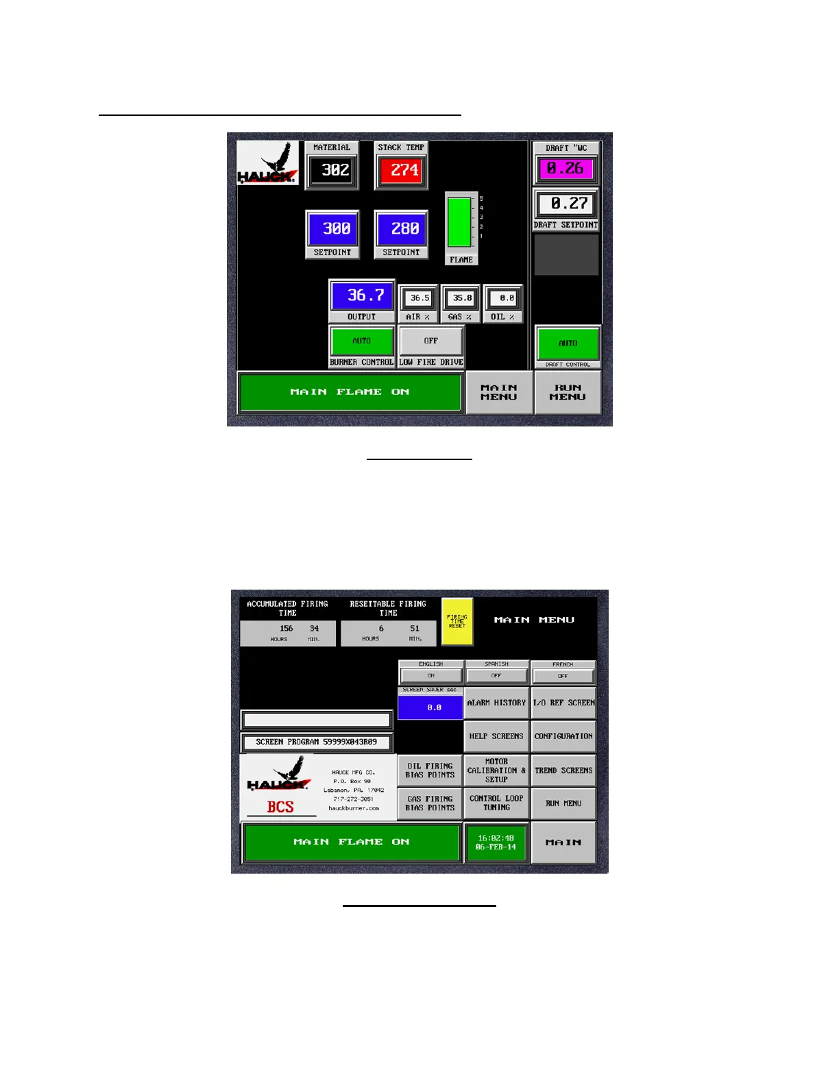 APPENDIX A: OPERATOR INTERFACE SCREENS