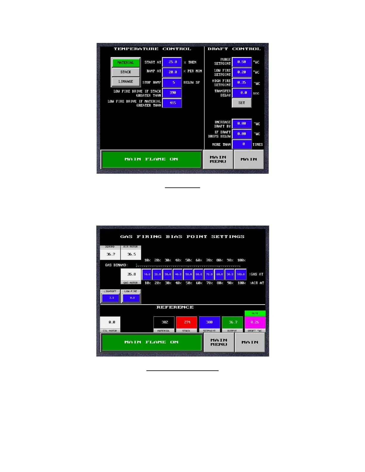 temperature control. Also provides for low fire drive alarms and draft setpoint inputs, selection