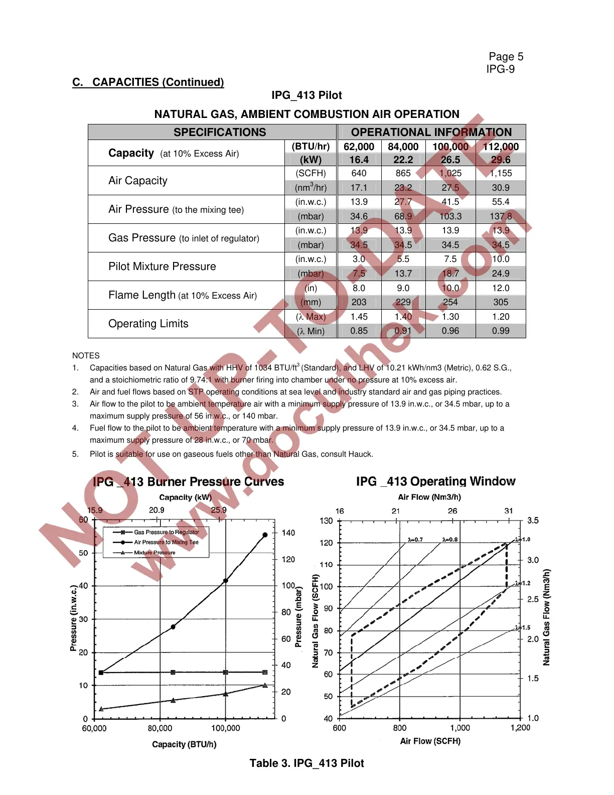 3. Air flow to the pilot to be ambient temperature air with a minimum supply pressure of 13.9 in.w.c., or 34.5 mbar, up to a