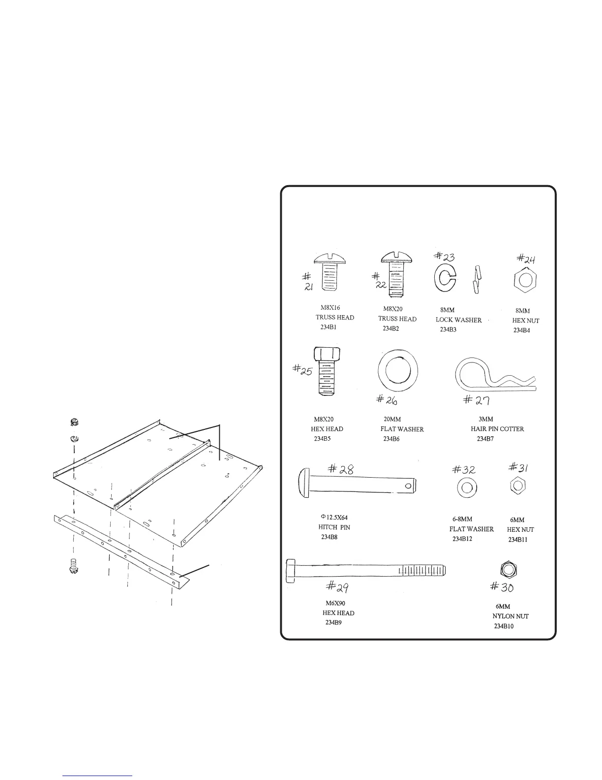 4 Bolts (#21), 4 Washers (#23) and 4 Nuts