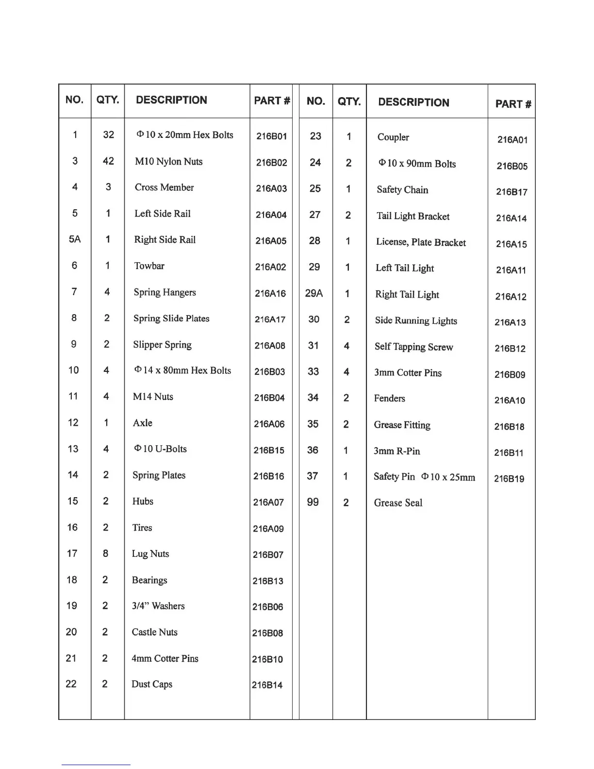 HAUL MASTER 42708 - PARTS LIST