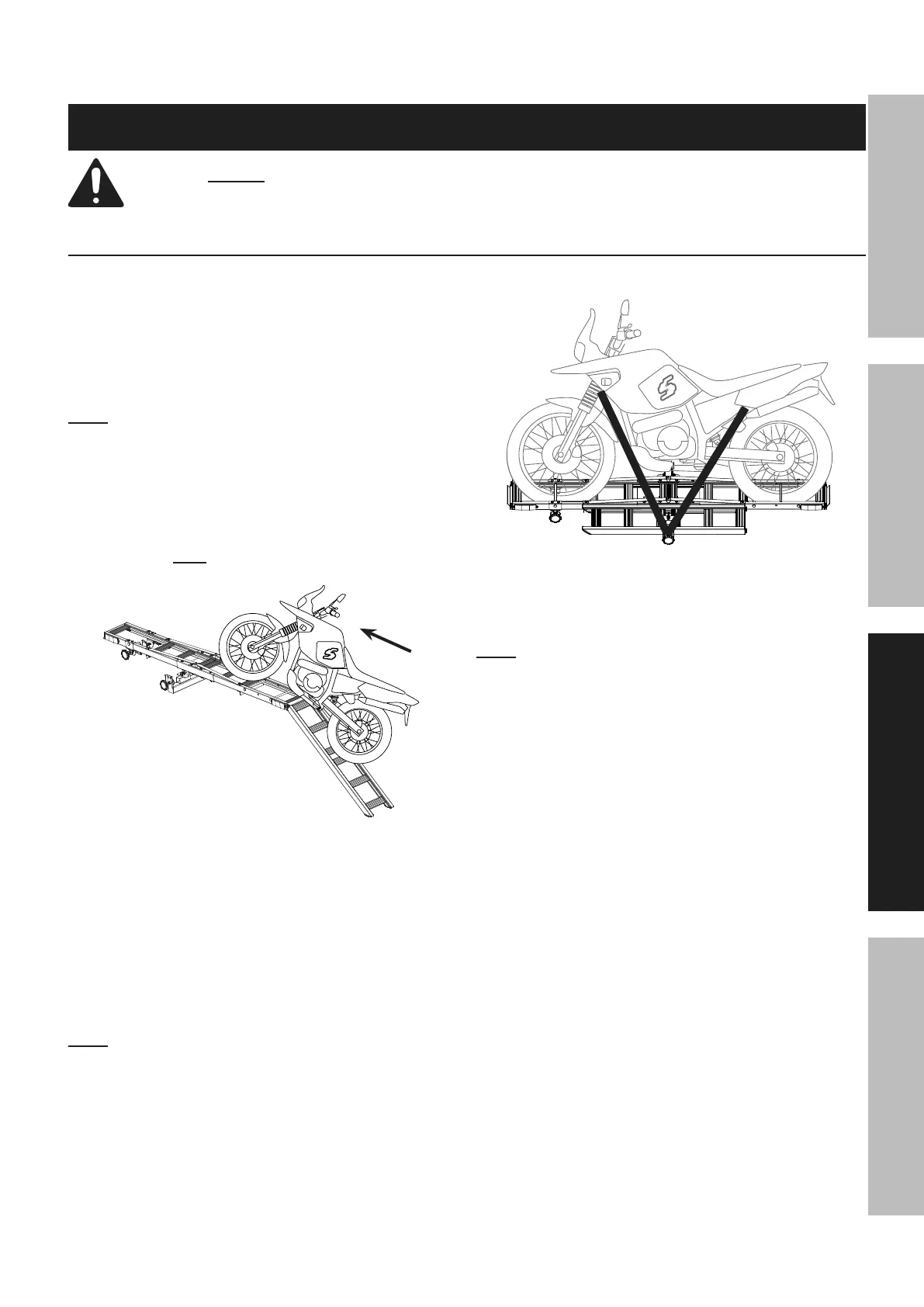 9. Tie down motorcycle, as shown above