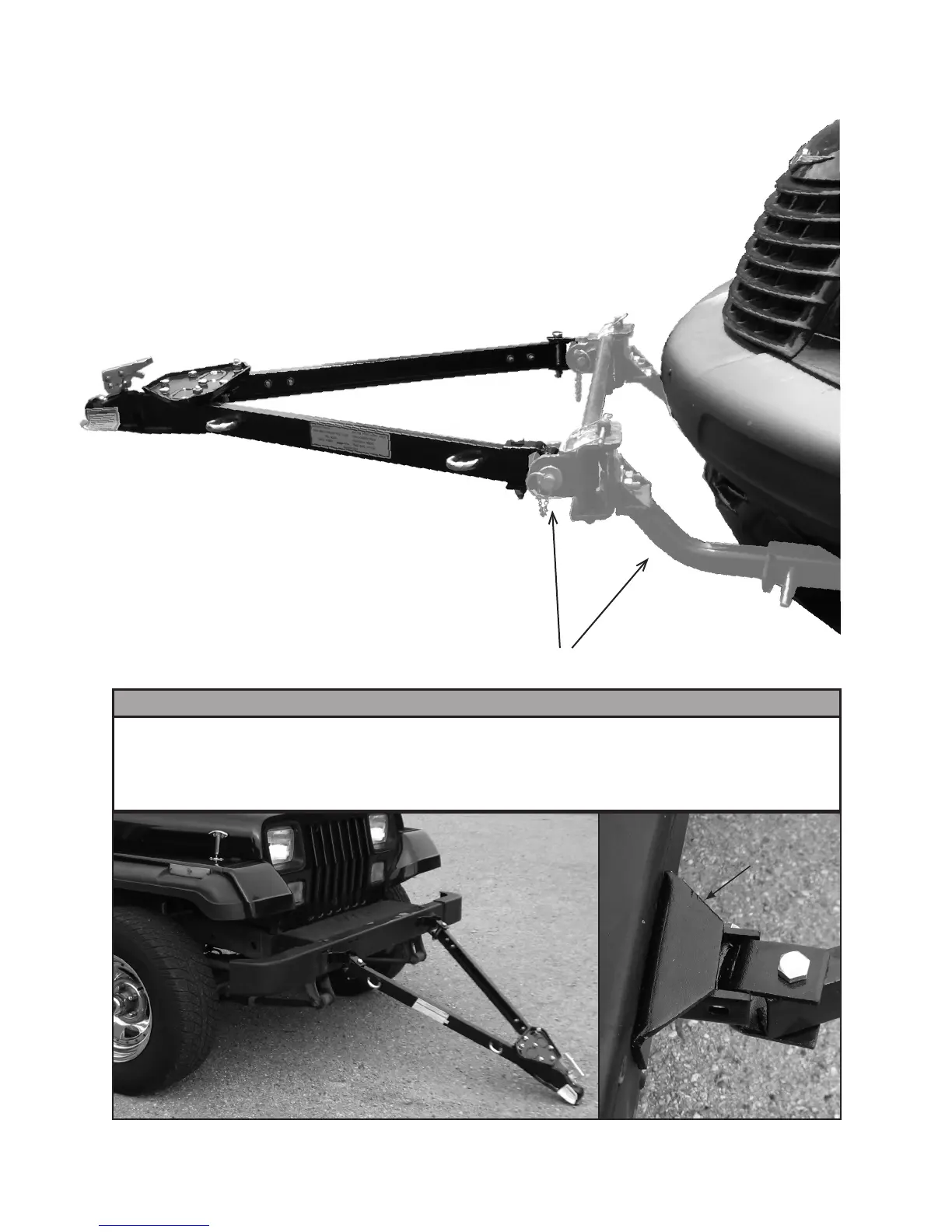 connected to your vehicle’s frame or chassis and must extend beyond the bumper to install the Adjustable Tow Bar.