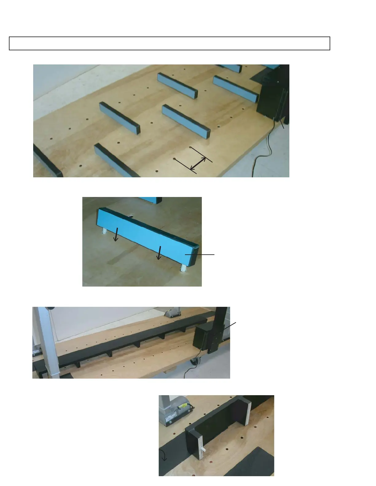 Detail showing (23) rows of holes in wood platform for variable placement of "blue" ladder steps