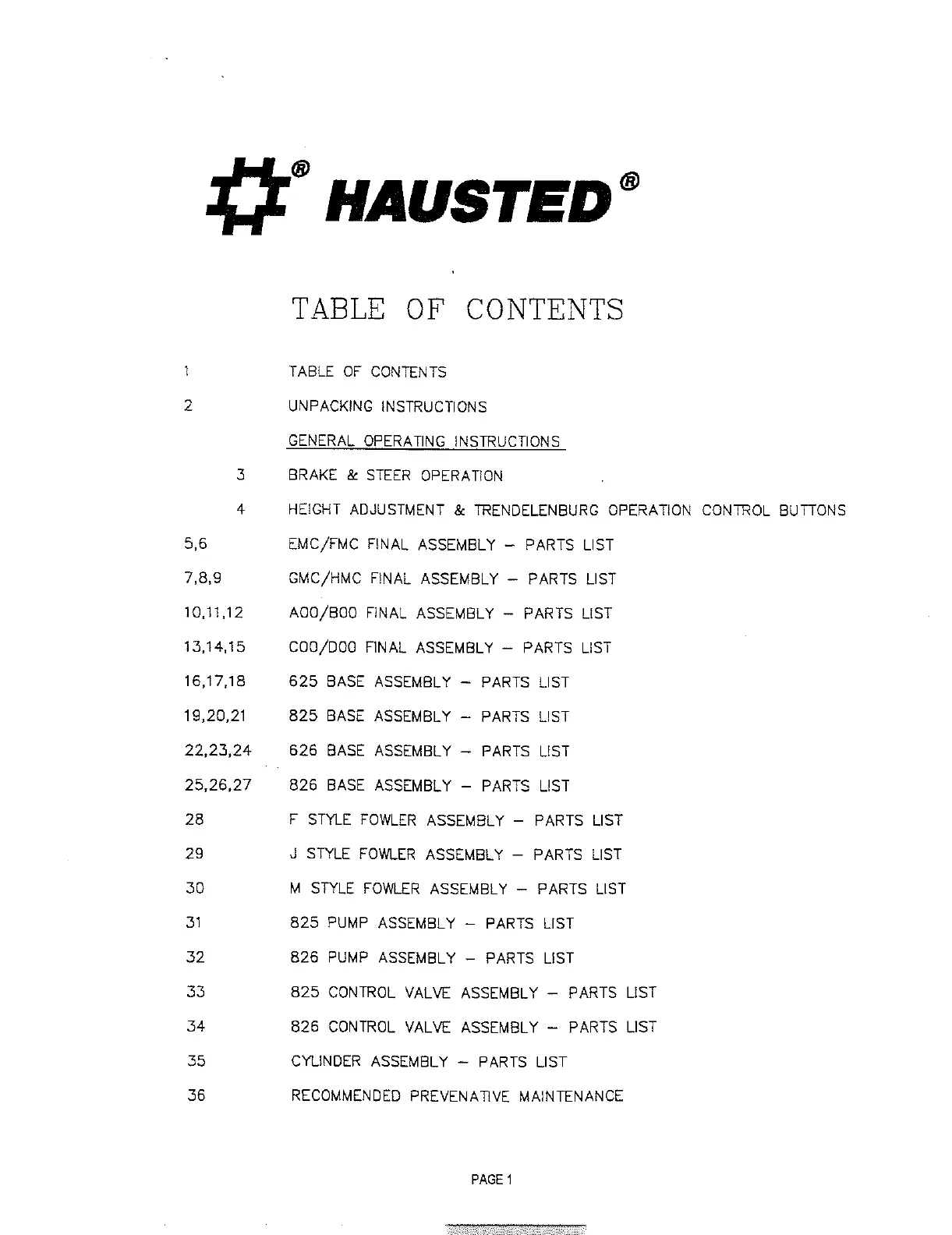 Hausted UNICARE Series - Table of Contents