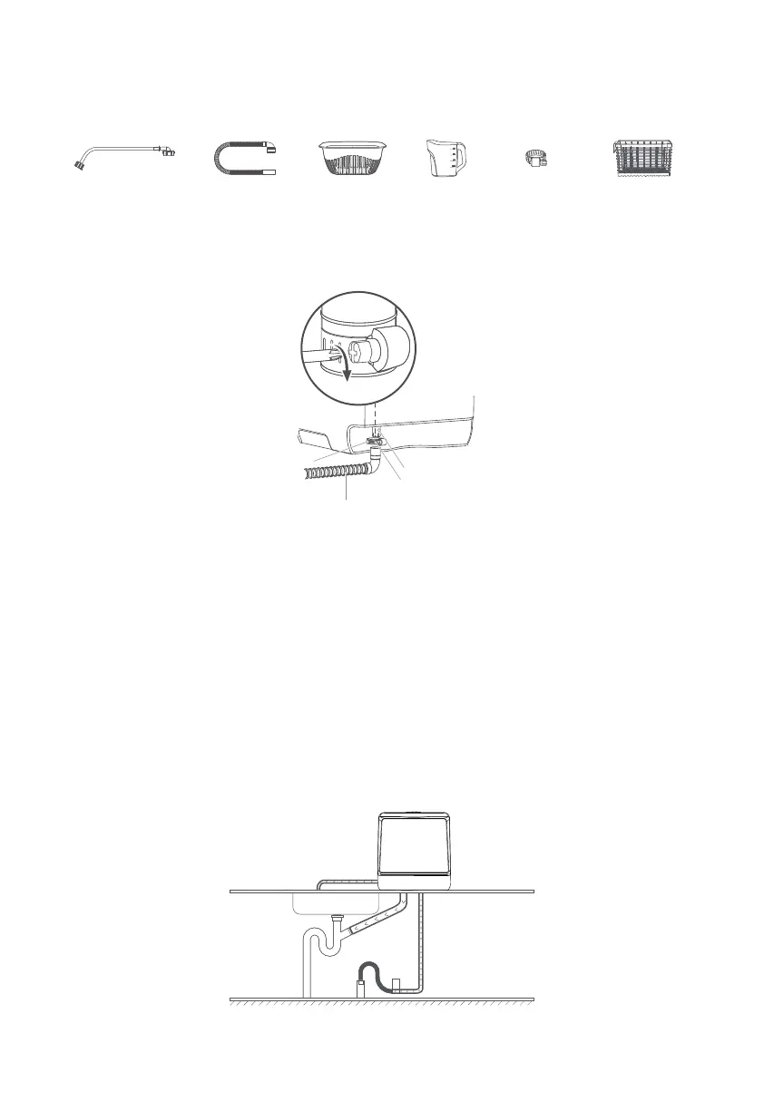 2. Der Ablaufschlauch muss vollständig an seiner Eindämmungsquelle (z.B. Spüle, Eimer usw.) angebracht sein,
