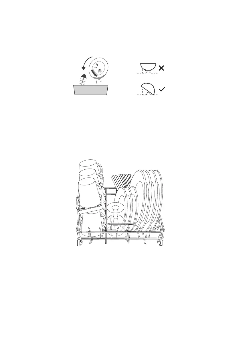 - Laden Sie hohle Gegenstände wie Tassen, Gläser, Pfannen usw. mit der Öffnung nach unten.