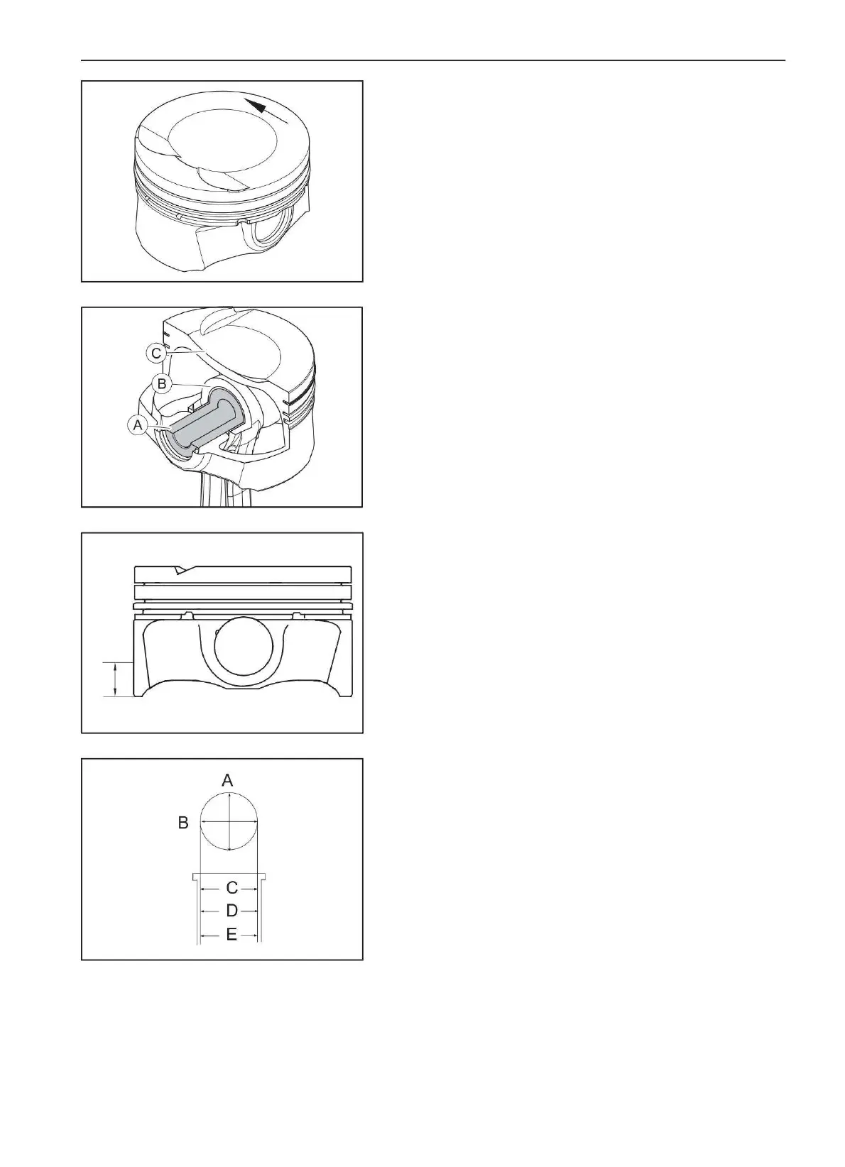 (b) Piston pin (A) must rotate freely relative to piston (C).